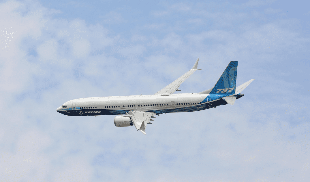 The Boeing 737-10, powered by CFM LEAP-1B engines.