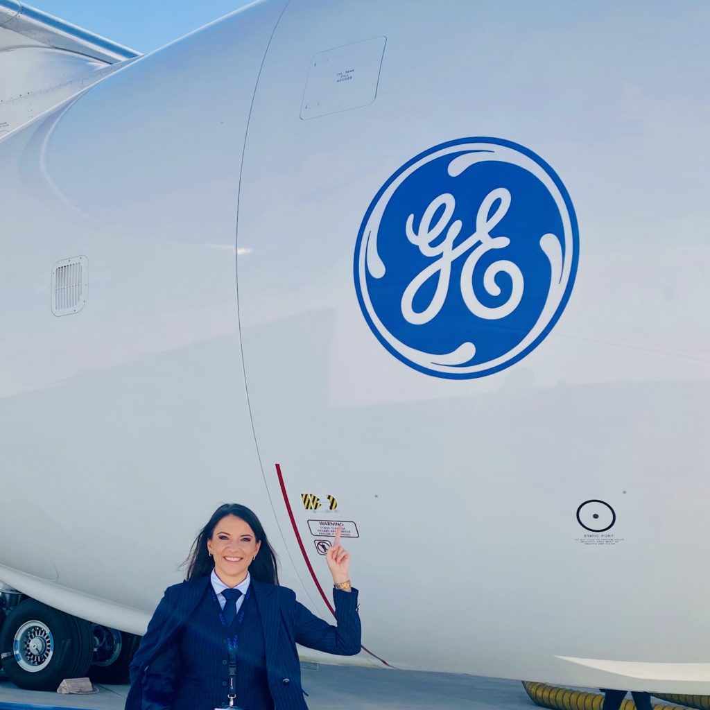 Leonte is also a self-described GE Aviation “superfan” and speaks about jet engines with the same passion as an engineer. Her favorite engine is the GE90, which powers the Boeing 777 jets on which she travels as a flight attendant.