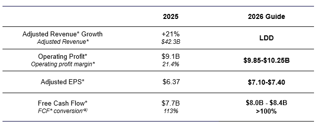 - Total revenue (GAAP) of $12.4B, +25%; adjusted revenue* $11.6B, +29%
